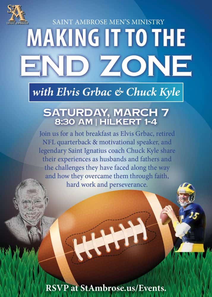 Join us for a hot breakfast as Elvis Grbac, retired NFL quarterback & motivational speaker, and legendary St. Ignatius coach Chuck Kyle share their experiences as husbands and fathers and the challenges they have faced along the way and how they overcame them through faith, hard work and perseverance.