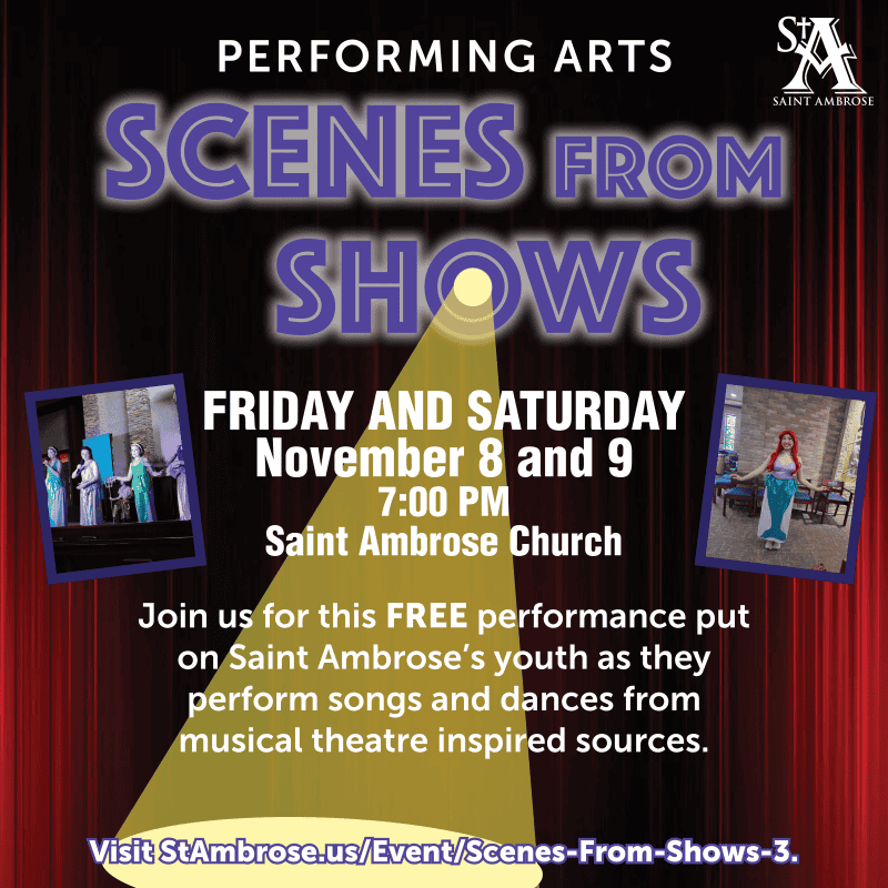 Our Performing Arts Ministry brings faith to life through music, drama, and movement. We offer a creative way to share the Gospel, deepen worship, and engage the community. Through choir, liturgical dance, plays, and special performances, our members use their God-given talents to inspire prayer, reflection, and connection with Christ. Throughout the year, at Saint Ambrose and as guests at other parishes and organizations, our ministry enriches liturgy and outreach with inspiring music, sacred drama, and movement that invite participation, reflection, and joyful worship.